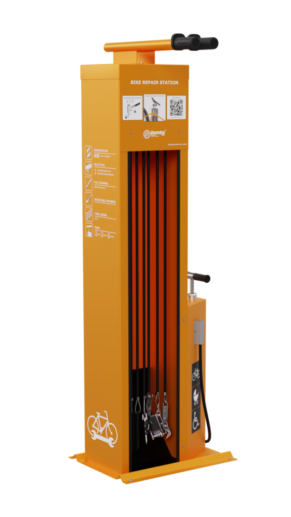 Therefore, by investing in our bike repair stations, you gain long-lasting advertising space that constantly strengthens the positive image of your brand.