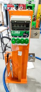 Self-service Bike Repair Station – E-IBOMBO SCANDIC is adapted for use in public spaces. Its housing is made of galvanized or stainless steel with powder coating. The device in the E-BIKE version is mounted to the ground. Sheet metal elements and the E-BIKE charging module are fastened with anti-theft screws – the bits for the screws will be handed over to the customer.